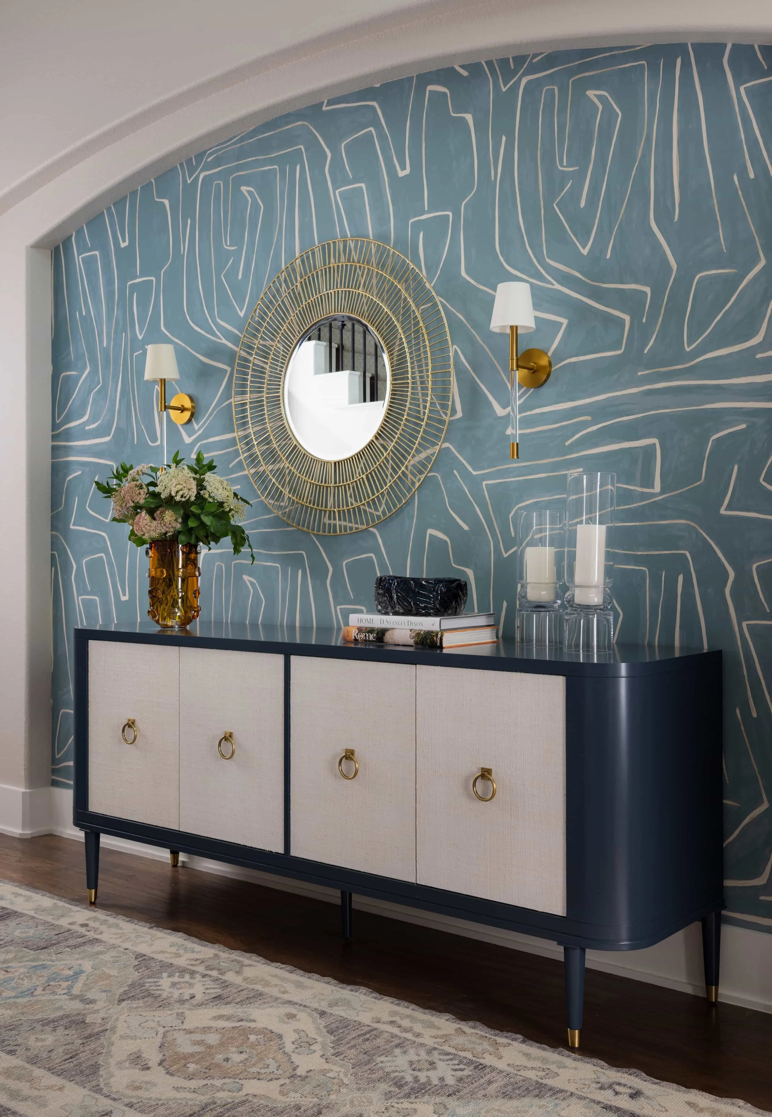 The entry sets the tone for your entire home. It is a smaller space where a bold, immersive paper is not overwhelming but genuinely dramatic. This is the ideal room to take a risk you might not take in a larger, more-lived-in space.